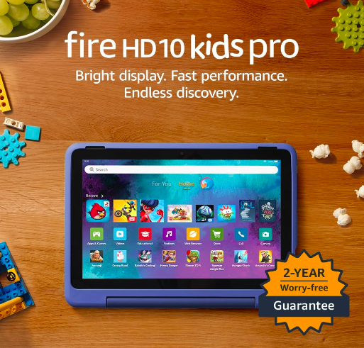 While supplies last, you can purchase an Amazon Fire HD 10 Kids Pro tablet (newest model) ages 6-12. Bright 10.1″ HD screen, includes ad-free content, robust parental controls, 13-hr battery and slim case for older kids, 32 GB, Nebula for just $139.99 on Amazon with Free Shipping for Amazon Prime Members.