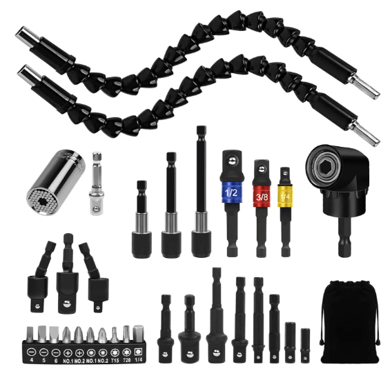 While supplies last, you can purchase a Flexible Drill Bit Extension Set, Including Right Angle Drill Attachmen, Rotatable Joint Socket 1/4 3/8 1/2 In Hex Socket Adapter, Bendable Drill Bit Extension and Drill Bit Holder Screwdriver Kit for just $9.99 on Amazon with Free Shipping for Amazon Prime Members.