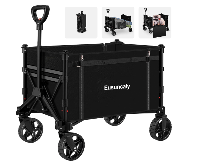 While supplies last, you can purchase a Collapsible Wagon Cart with Wheels Foldable Wagon Folding Outdoor Utility Wagon Grocery Wagon for Camping Shopping Sports Gardeing Fishing (Black) for just $26.99 on Amazon with Free Shipping for Amazon Prime Members.