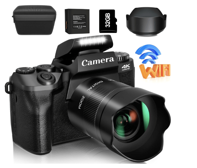While supplies last, you can purchase a Saneen Digital Camera, 4k Cameras for Photography & Video, 64MP WiFi Touch Screen Vlogging Camera for YouTube with Flash, 32GB Card, Lens Hood, 3000mAH Battery, Front and Rear Cameras – Black for just $119.99 on Amazon with Free Shipping for Amazon Prime Members.