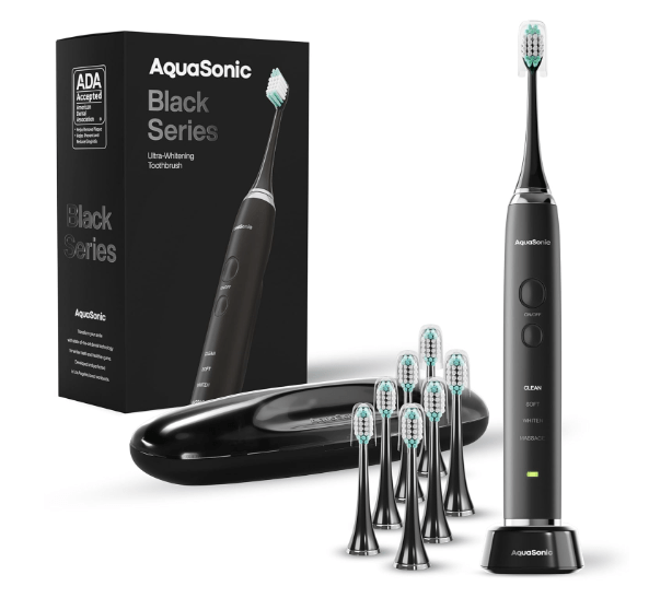 While supplies last, you can purchase an Aquasonic Black Series Ultra Whitening Toothbrush – ADA Accepted Electric Toothbrush- 8 Brush Heads & Travel Case – 40,000 VPM Electric Motor & Wireless Charging – 4 Modes w Smart Timer for just $29.95 on Amazon with Free Shipping for Amazon Prime Members.