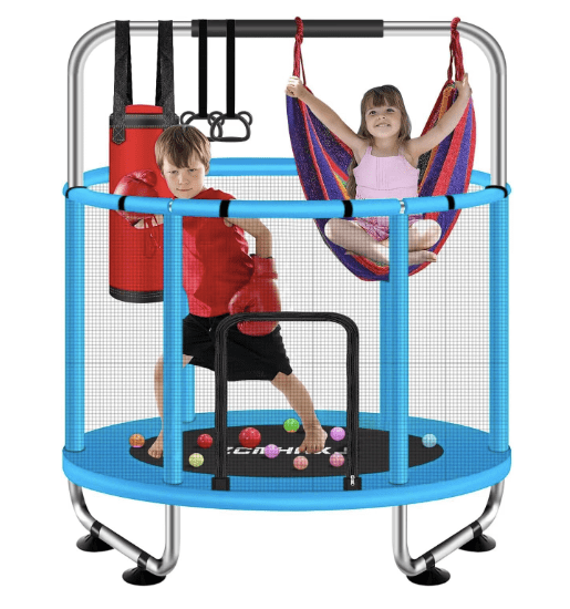 While supplies last, you can purchase a 55″ Trampoline for Kids with Enclosure, 440lbs Capacity Indoor & Outdoor Toddler Trampoline with Adjustable Gymnastics Bar & Toys, for Boys & Girls for just $89.99 on Amazon with Free Shipping for Amazon Prime Members.