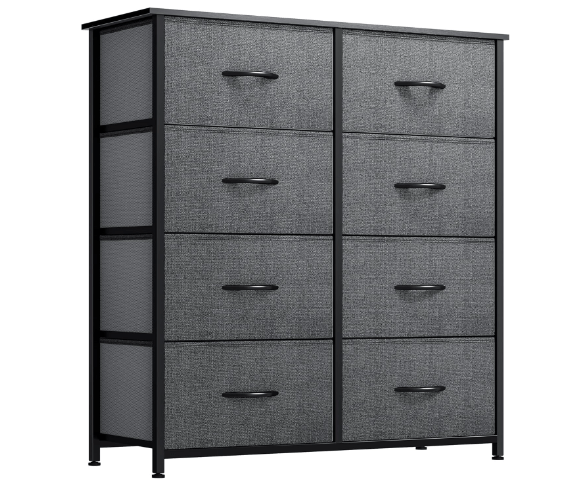 While supplies last, you can purchase an DWVO Dresser for Bedroom, Fabric Dresser with 8 Drawers, Tall Dresser, Double Dresser, Chest of Drawers for Closet, Living Room, Sturdy Steel Frame, Wooden Top, Easy Pull Handle, Black Ash for just $36.99 on Amazon with Free Shipping for Amazon Prime Members.
