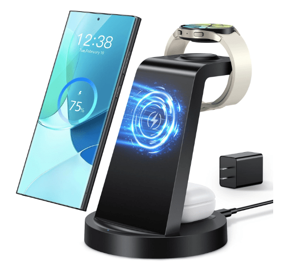 While supplies last, you can purchase a Wireless Charger for Samsung: 3 in 1 Wireless Charging Station for Samsung Galaxy Watch 7 6 5 4 3 Pro Classic Galaxy Buds – Charger Dock Stand for S25 S24 Ultra S23 S22 S21 Note Z Fold Android for just $23.99 on Amazon for Amazon Prime Members. Not a Prime Member, you can still purchase this item for $29.99, a savings of 25% off the MSRP.