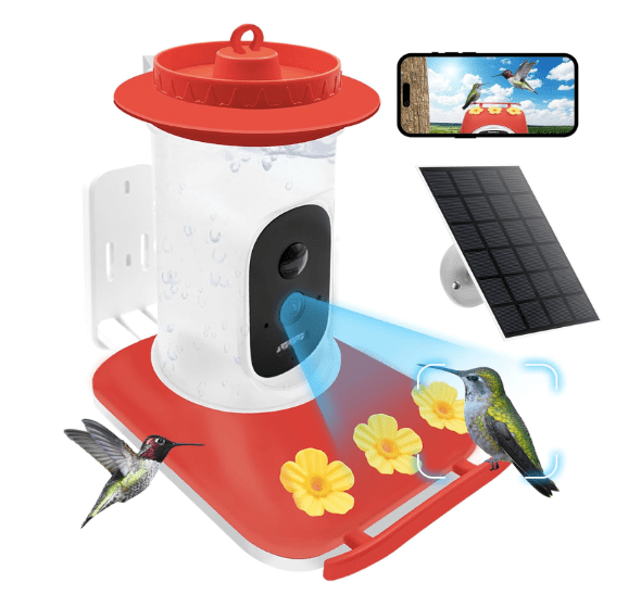 While supplies last, you can purchase a Smart Hummingbird Feeder with Camera Solar Powered,AI Identify,Auto Capture Bird Videos & Motion Detection Notification,Ant Moat, Bee Proof,Ideal Gift for Bird Lovers for just $90.10 on Amazon with Free Shipping for Amazon Prime Members. You must clip the 15% Off coupon on the product page to get this special price.