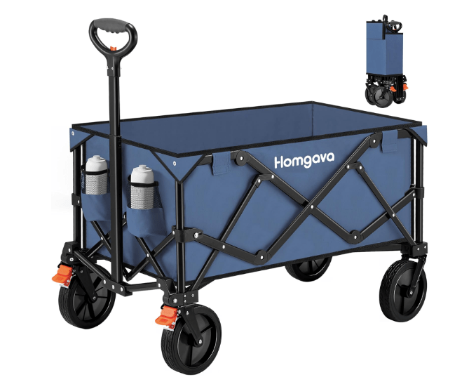 While supplies last, you can purchase a Collapsible Folding Wagon Cart 150L,Heavy Duty Garden Cart with All Terrain Wheels,Portable Large Capacity Utility Wagon Cart for Camping Fishing Sports Shopping,Blue&Orange for just $30.99 on Amazon with Free Shipping for Amazon Prime Members.