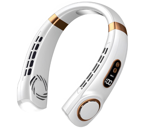 While supplies last, you can purchase a LED light Neck Fan Air Conditioner with Cooling Plates, 5 Speeds Blow Cold Air Adjustable, Portable 4000 mAh Battery USB Rechargeable Personal Fan for Women, Camping Travel, Outdoor, White for just $19.99 on Amazon with Free Shipping for Amazon Prime Members.