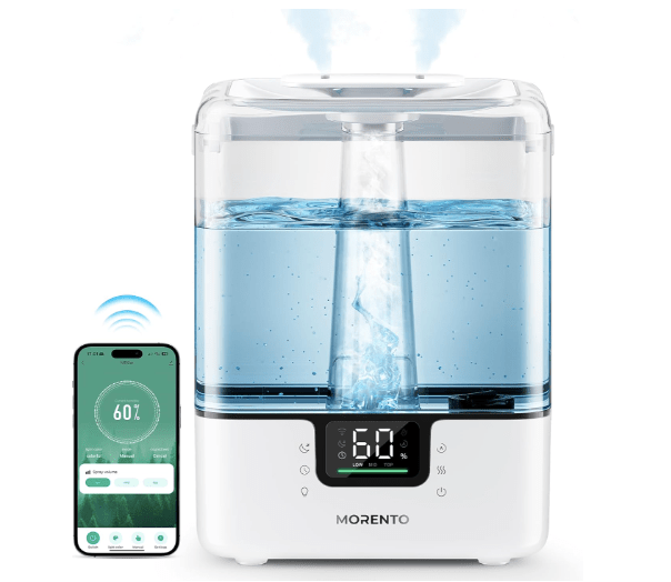 While supplies last, you can purchase a MORENTO Smart Humidifiers for Bedroom Large Room Home, 6L Cool Mist Top Fill Humidifier with Essential Oil Diffuser, Smart App & Voice Control, for Nursery & Plants, White, 1 Pack + 7 Color NightLight for just $45.59 on Amazon with Free Shipping for Amazon Prime Members.