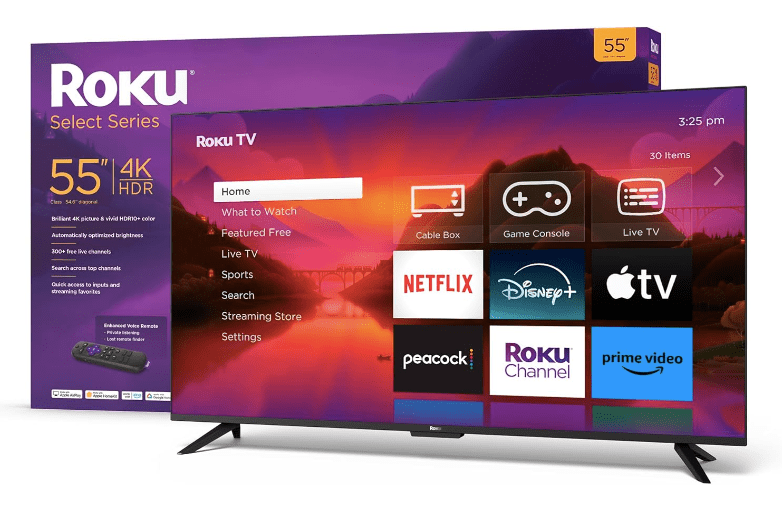 While supplies last, you can purchase a Roku Smart TV – 55-Inch Select Series 4K HDR RokuTV with Roku Enhanced Voice Remote, Brilliant 4K Picture, Automatic Brightness, & Seamless Streaming – Live Local News, Sports, Family Entertainment for just $269.99 on Amazon with Free Shipping for Amazon Prime Members.